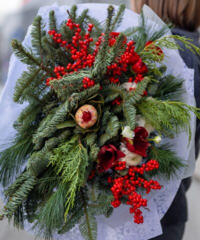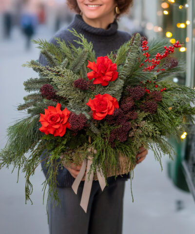 Christmas reindeer, white-red sweater (L = 36 cm)