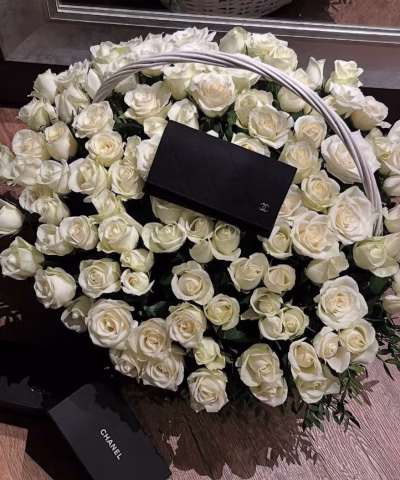Корзина 151 белая Кенийская роза + фисташка по фото (SP)