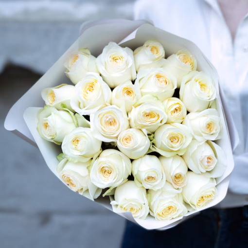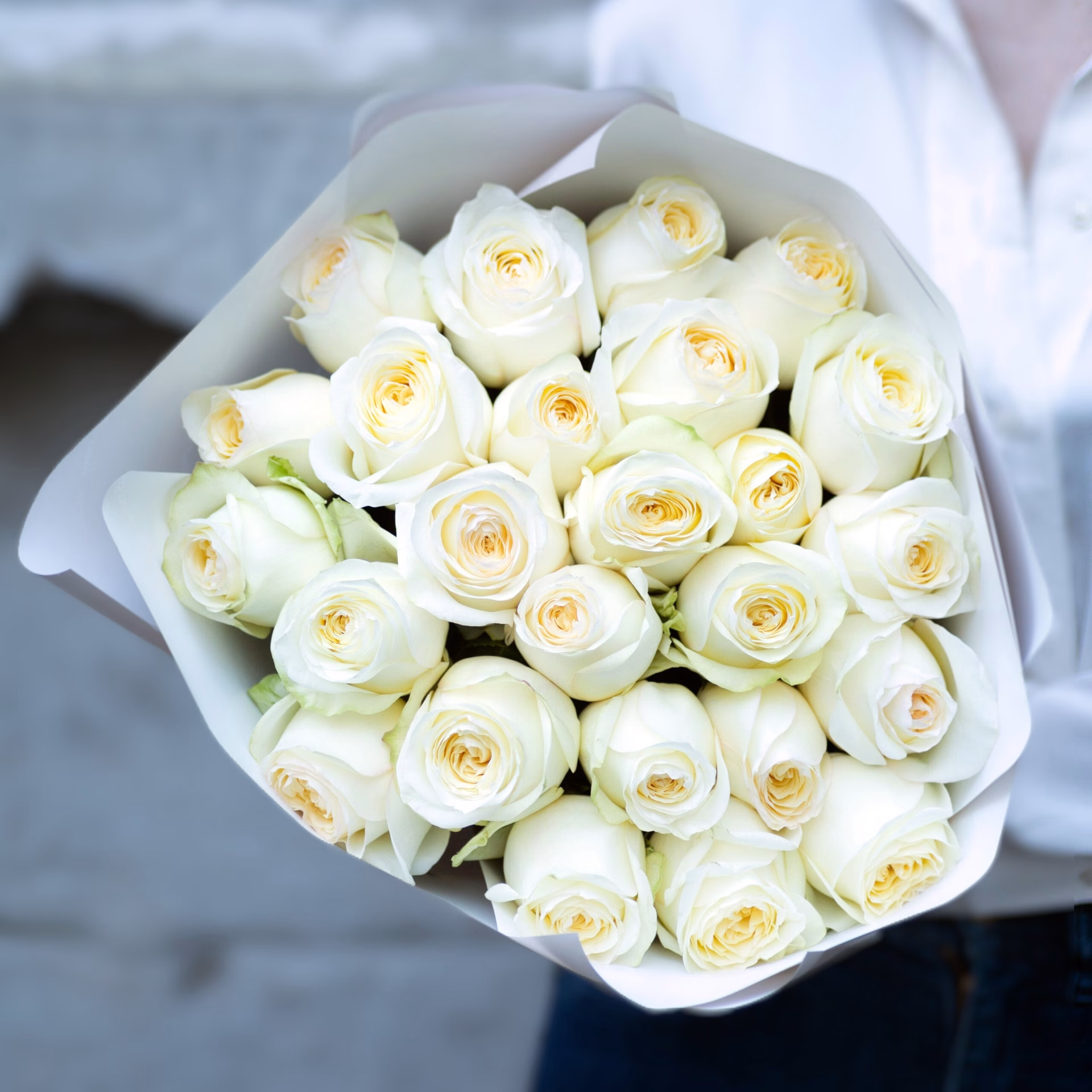 Classic bouquet of 25 white  ecuador roses. We include a flower card and a pack of a rose life-extending product with each bouquet.