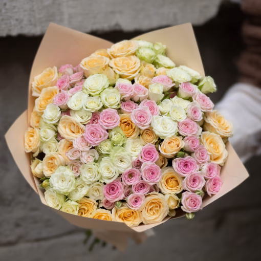Bouquet of 29 spray roses. A complimentary flower card and a pack of cut flower food are included with each bouquet.