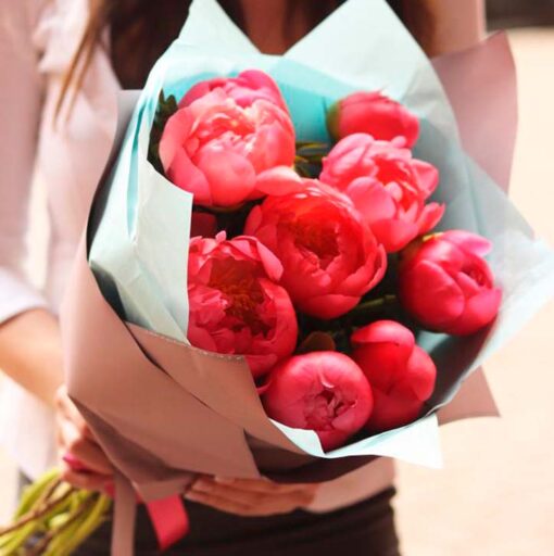 -32%A classic bouquet of peonies (5 pieces) in a stylish wrapping. We attach a card as a gift and a flower life extension product to each bouquet. The recommended number of sachets for extending the bouquet’s life is 5 pieces.