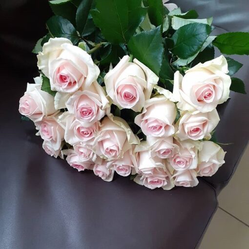 Classic bouquet of 25 tender pink roses, 50 cm tall. We include a complimentary flower card and a pack of a rose life-extending product with each bouquet.