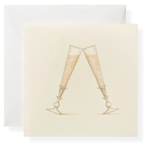 Paper color: natural white | Envelope color: vellum | Print process: full colour | Embellishment: hand-glittered | Dimensions: 3 × 3 inches (approx. 7.6 × 7.6 cm)