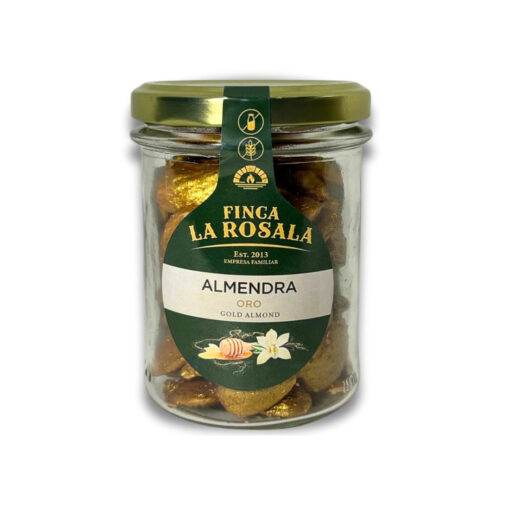 Blanched Valencia almonds, hand-roasted with rosemary honey, edible gold, and nougat flavor. Elegant taste and presentation