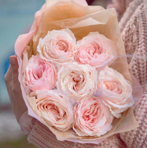 The magnificient bouquet of roses (7 cm), 50 cm tall, in a stylish wrap. A complimentary flower card and a pack of cut flower food are included with each bouquet. The recommended number of sachets for extending the bouquet’s life is 7 pieces.