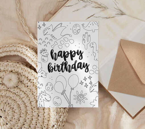 Card Coloring Card – Dinosaur Party
