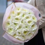 Bouquet of 25 chrysanthemums in a stylish wrap. We include a complimentary flower card and a pack of a flower life-extending and care product with each bouquet.