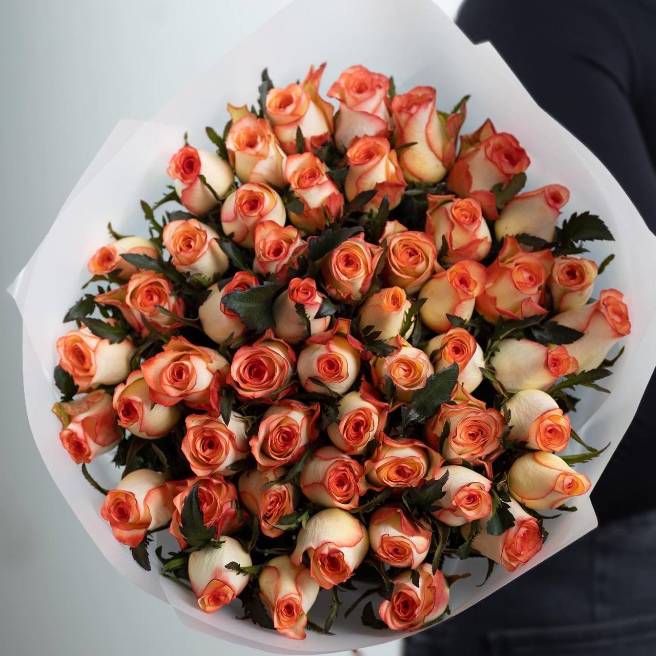 Chic bouquet of 51 roses, 70-80 cm tall, in a stylish wrap. A complimentary flower card and a pack of cut flower food are included with each bouquet. The recommended number of sachets of flower life extender is 4pcs.