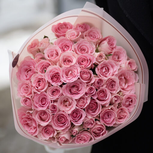 Chic bouquet of 51 roses, 35-50 cm tall, in a stylish wrap. A complimentary flower card and a pack of cut flower food are included with each bouquet.
