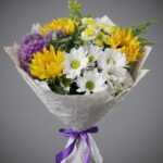 Seasonal bouquet with a variety of flowers. Total number of stems – 11. The color palette may vary. The photo is for illustration purposes only – the bouquet is made from seasonal flowers available at the time of the order. Please indicate in the comments whether you prefer a delicate or a vibrant bouquet. In any case, the bouquet will be stylish and fresh.