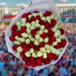 Chic & classic bouquet of 101 roses(Kenya), 40-50 cm tall. We include a complimentary flower card and a pack of a rose life-extending product with each bouquet.
