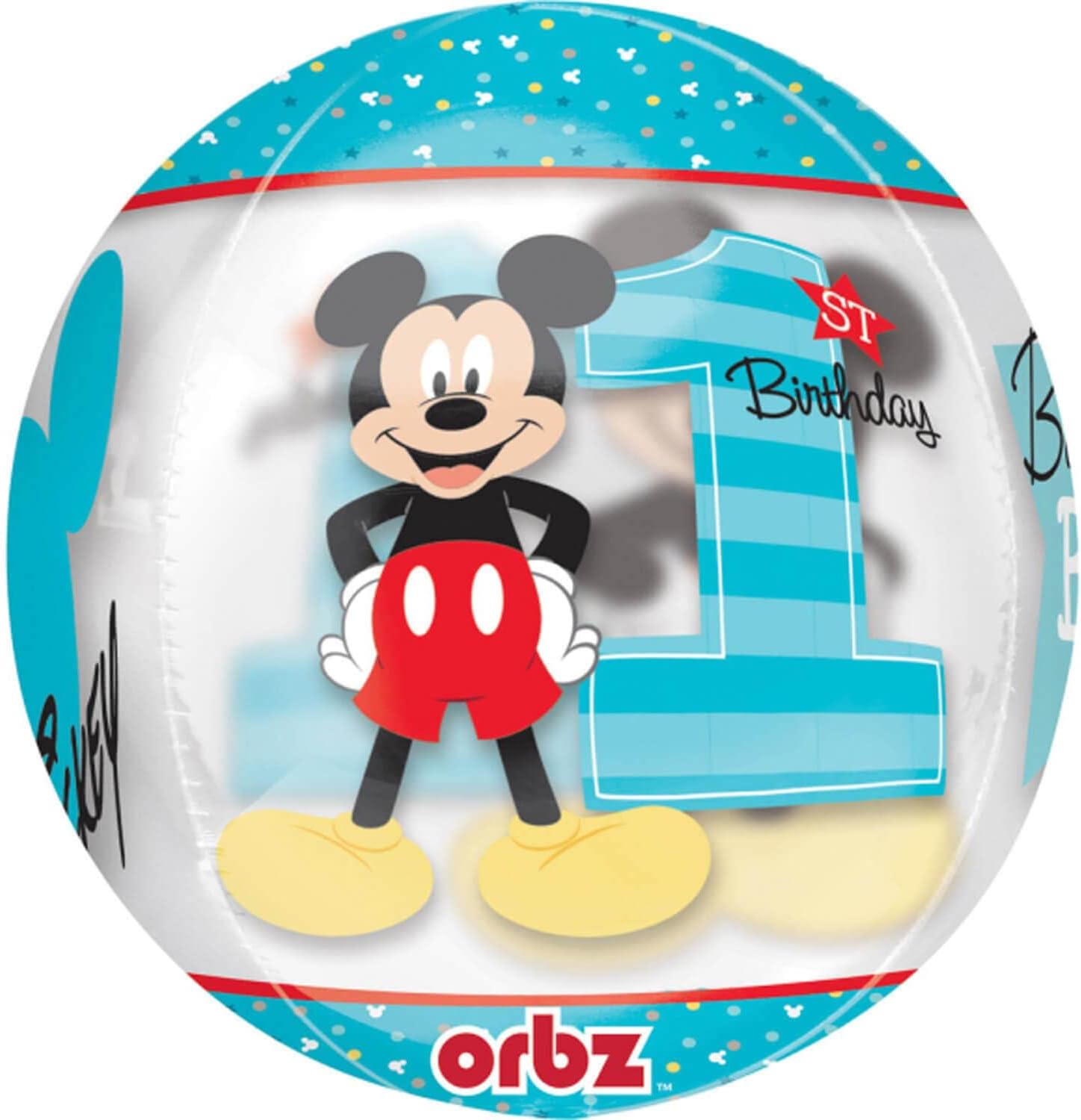 Mickey Mouse 1st Birthday Clear Orbz helium balloon (16 inch)