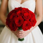 A bridal bouquet of 19 classic red roses. Decoration: satin ribbon. The number and colour of roses are variable.