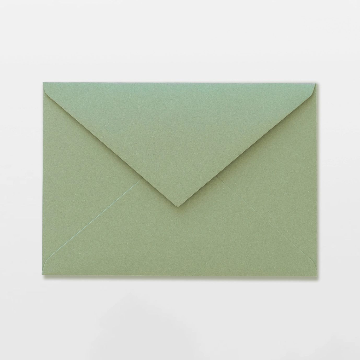A stylish green envelope that adds a special touch to any letter or postcard. Made from FSC™ certified paper with a soft texture and natural feel. Envelope size is 114 × 162 mm, fits A6 postcards.