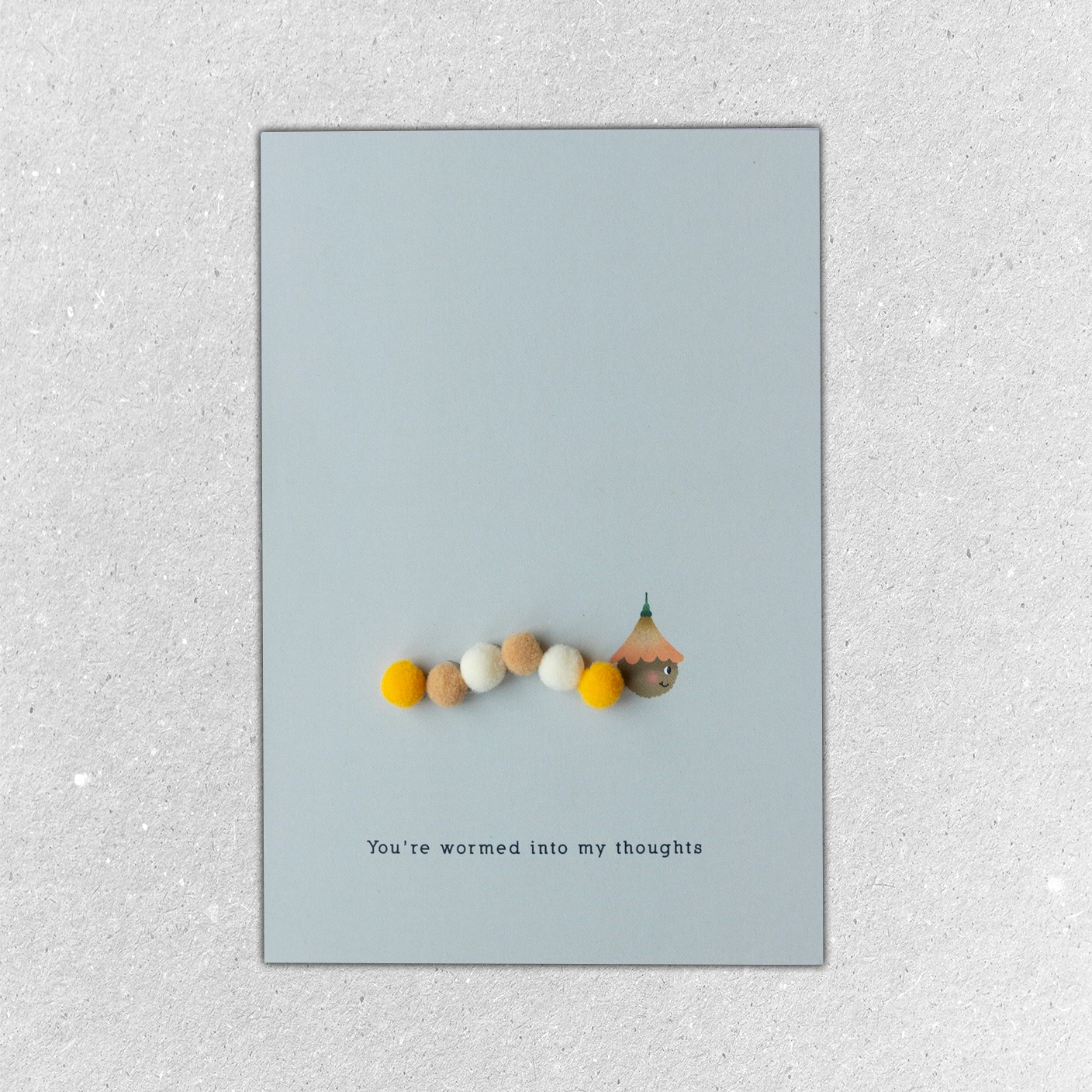A playful and unique card with the text \”Hip hip hooray\”. Decorated with soft pompoms that create a charming 3D effect.