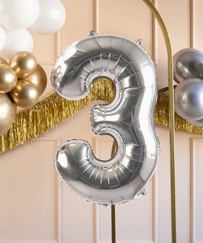 Fooliumõhupall Number ‘3’, 72 cm, hõbedane