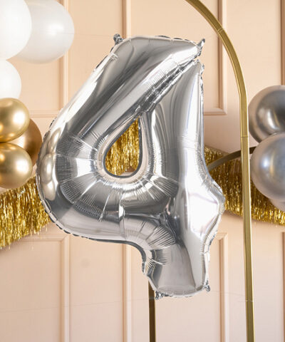Fooliumõhupall Number ‘4’, 72 cm, hõbedane