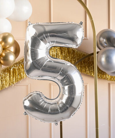 Fooliumõhupall Number ‘5’, 72 cm, hõbedane