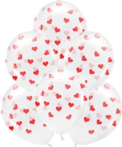 Lateksist heeliumõhupallid Hearts Crystal Clear (33 cm, 6 pcs)