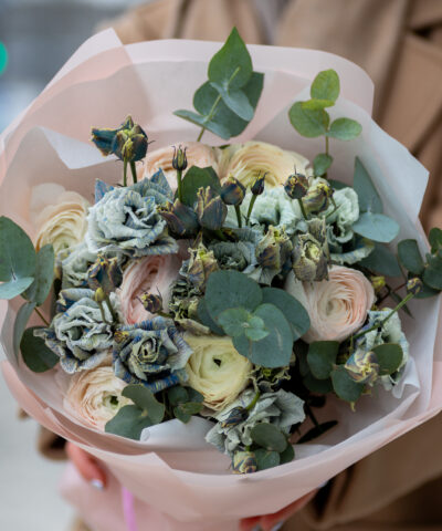 Kimp ranunkulitest, eustomast ja eukalüptist