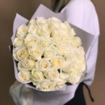 Klassikaline kimp 35 valgest roosist, kõrgus 50 cm. Igale kimbule lisame kinkekaardi ja rooside elu pikendamis hooldusvahendi. Kimpide eluea pikendamiseks soovitatav kotikeste arv – 4 tk