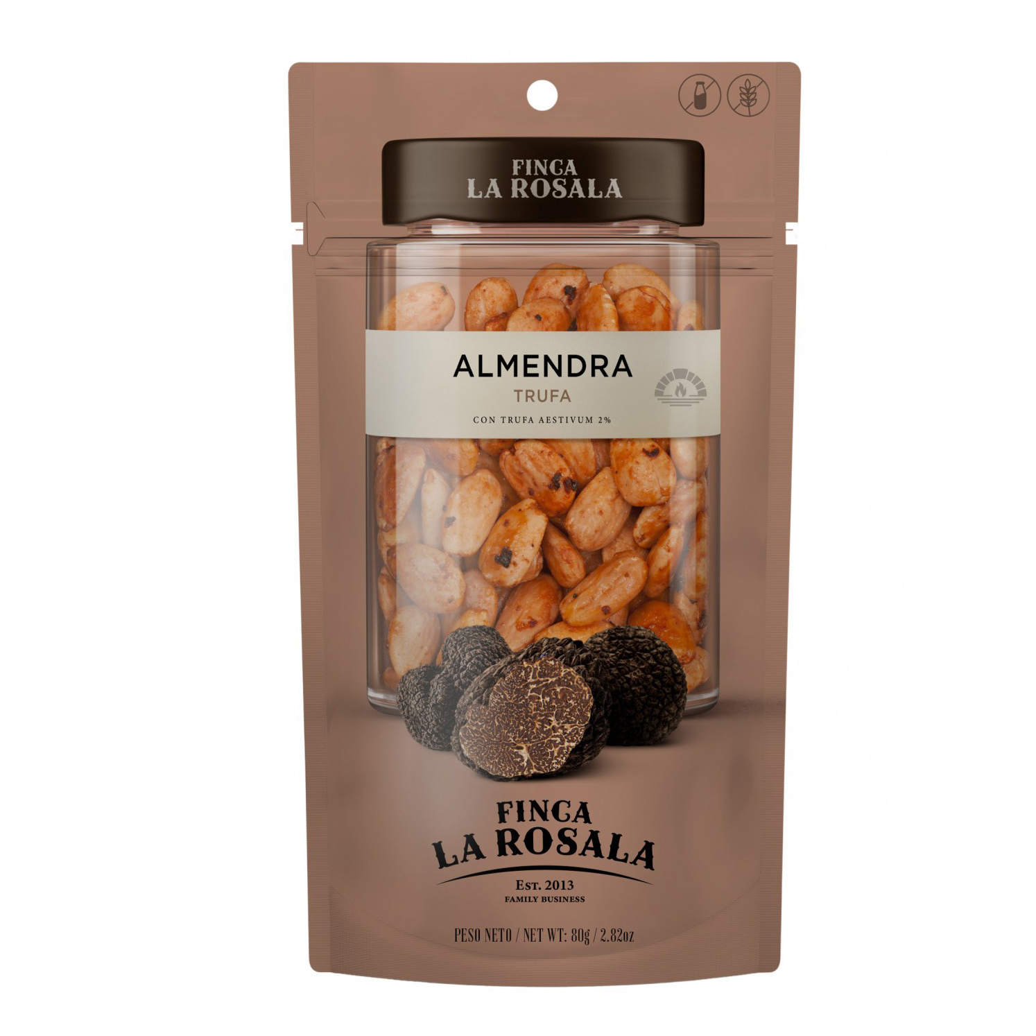 Käsitsi röstitud Hispaania Marcona mandlid, õrnalt glasuuritud ja loodusliku trühvlimaitsega. Hõrk gurmeesnäkk, ideaalne salatitesse või koos veini ja kokteilidega