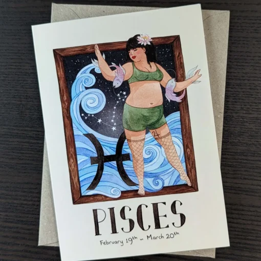 Täiuslik kaart sinu elus olevale Kalade märgi esindajale – vallatu, lõbus ja paneb kindlasti igaühe naeratama. Kaardi tagaküljel on mõned olulised faktid Kalade kohta, sisekülg on tühi sinu sõnumi jaoks.