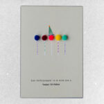 Lõbus ja värvikas sünnipäevakaart tekstiga “Just (lolly)poppin’ in to wish you a happy birthday”. Kaunistatud pehmete pompommidega, mis loovad rõõmsa 3D-efekti.