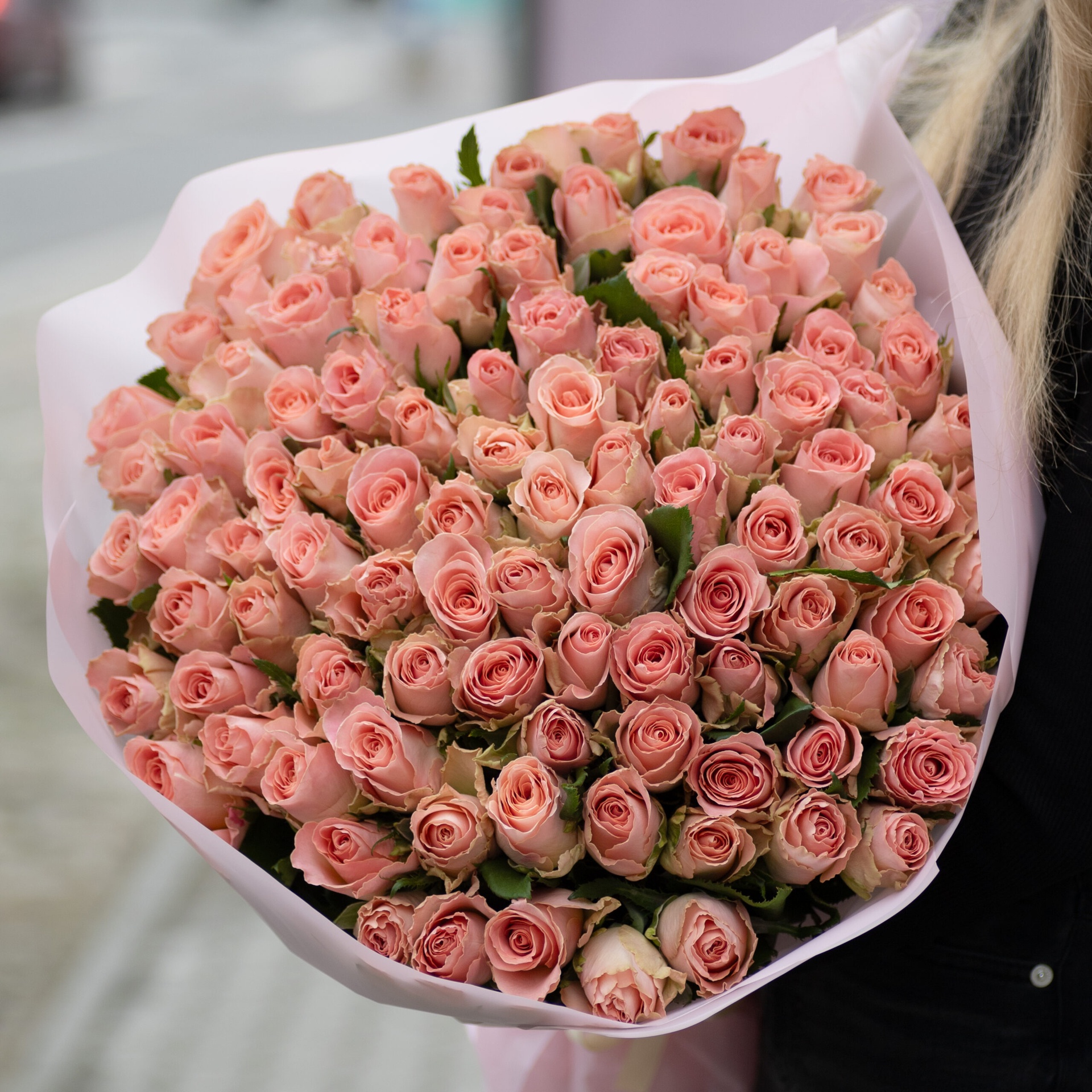 Šikk klassikaline kimp 101 roosi, kõrgus 35-50 cm. Igale kimbule lisame kinkekaardi ja rooside elu pikendamis hooldusvahendi. Kimpide eluea pikendamiseks soovitatav kotikeste arv – 5 tk