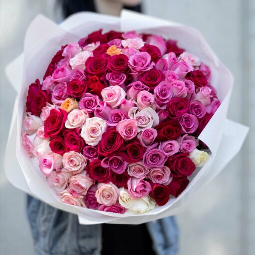 Šikk klassikaline kimp 101 mix roosi(Ecuador), kõrgus 40-50 cm. Igale kimbule lisame kinkekaardi ja rooside elu pikendamis hooldusvahendi. Kimpide eluea pikendamiseks soovitatav kotikeste arv – 15 tk