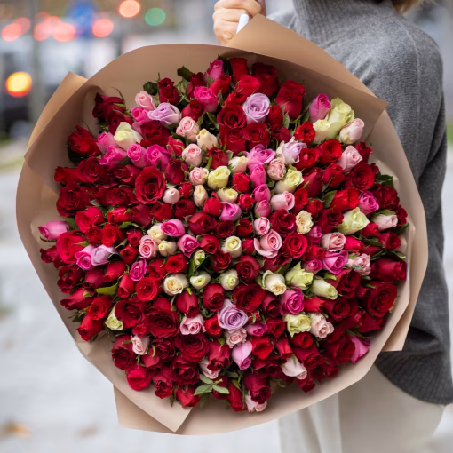 Rooside miks loob lopsaka ja värvika mulje — sobib ideaalselt pulmadeks, juubeliteks, armastuse avaldamiseks või eriliseks hetkeks.