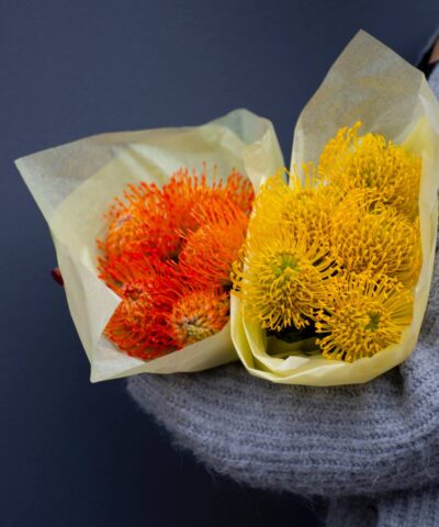 Kimp 25 põõsaskrüsanteemist stiilses pakendis. Erinevad värvid. Igale kimbule lisame tasuta kinkekaardi ja spetsiaalse hooldusvahendi, mis pikendab lillede eluiga ja hõlbustab nende hooldamist.