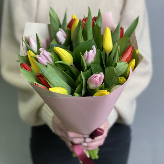 Kimp 25 tulbi mix stiilses pakendis. Igale kimbule lisame kinkekaardi ja lillede elu pikendamis hooldusvahendi.