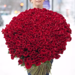 Chic bouquet of 301 red roses , 70 cm tall, in a stylish wrap. A complimentary flower card and a pack of cut flower food are included with each bouquet.