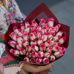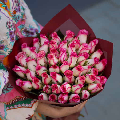 Šikk klassikaline kimp 51-st roosi, kõrgus 35-50 cm. Igale kimbule lisame kinkekaardi ja rooside elu pikendamis hooldusvahendi. Kimpide eluea pikendamiseks soovitatav kotikeste arv – 5 tk