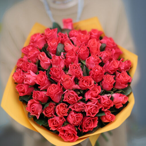 Šikk klassikaline kimp 51-st roosi, kõrgus 70 cm. Igale kimbule lisame kinkekaardi ja rooside elu pikendamis hooldusvahendi. Kimpide eluea pikendamiseks soovitatav kotikeste arv – 5 tk