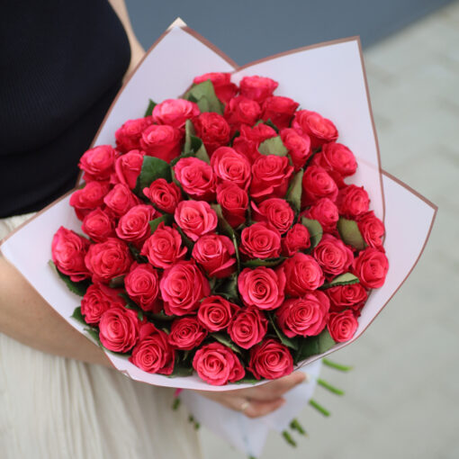 Šikk klassikaline kimp 51-st roosi, kõrgus 35-50 cm. Igale kimbule lisame kinkekaardi ja rooside elu pikendamis hooldusvahendi. Kimpide eluea pikendamiseks soovitatav kotikeste arv – 5 tk