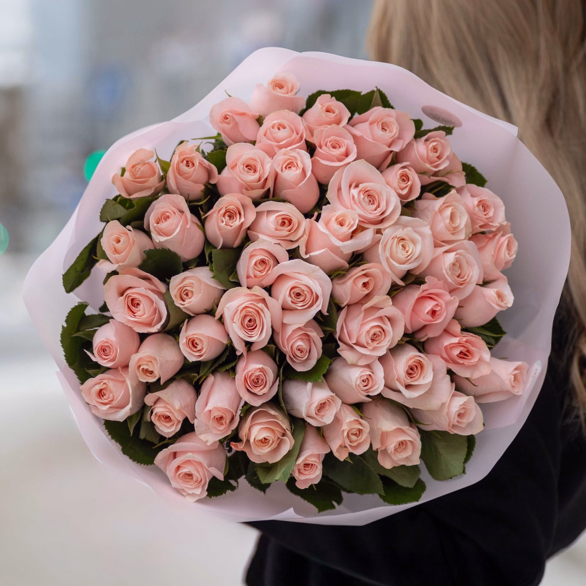 Stiilne kimp 51 õrnroosa Pomarosa roosiga. Suured õied, 70 cm varred ja puhas disain muudavad selle kimbu elegantseks ja meeldejäävaks kingituseks.