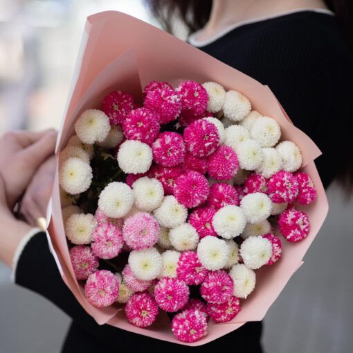 Kimp 9 põõsaskrüsanteemist stiilses pakendis. Erinevad värvid. Igale kimbule lisame tasuta kinkekaardi ja spetsiaalse hooldusvahendi, mis pikendab lillede eluiga ja hõlbustab nende hooldamist.