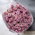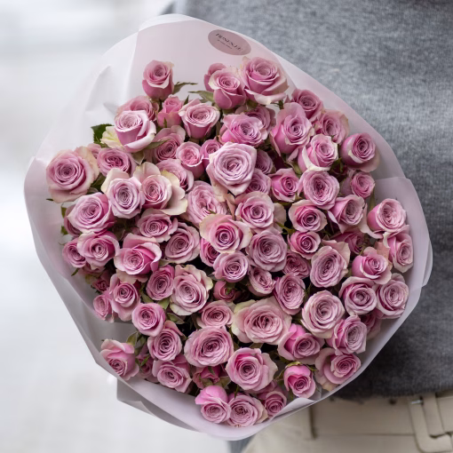 Šikk klassikaline kimp lillast põõsasroosist, kõrgus 35–50 cm. Iga kimbu juurde lisame kingitusena kaardi ja rooside eluiga pikendava vahendi. Soovitatav hooldusvahendi kogus selle kimbu jaoks on 3 pakikest.