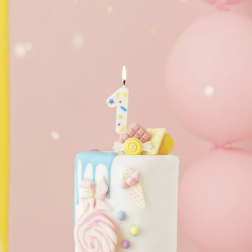 Sünnipäevaküünal number ‘1’, valge konfetti, 5,5 cm