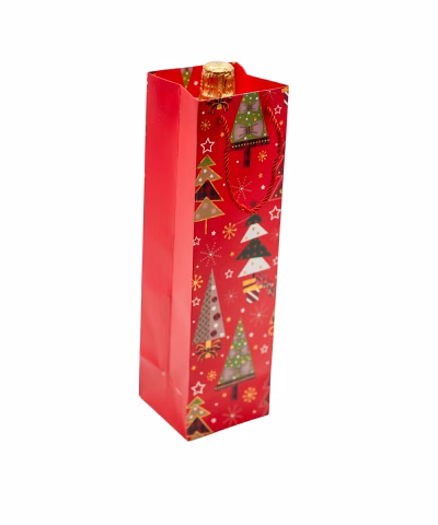 Рождественский подарочный пакет для бутылки красный (L=38 см)