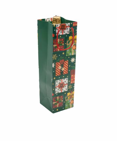 Рождественский подарочный пакет для бутылки зелёный (L=38 см)