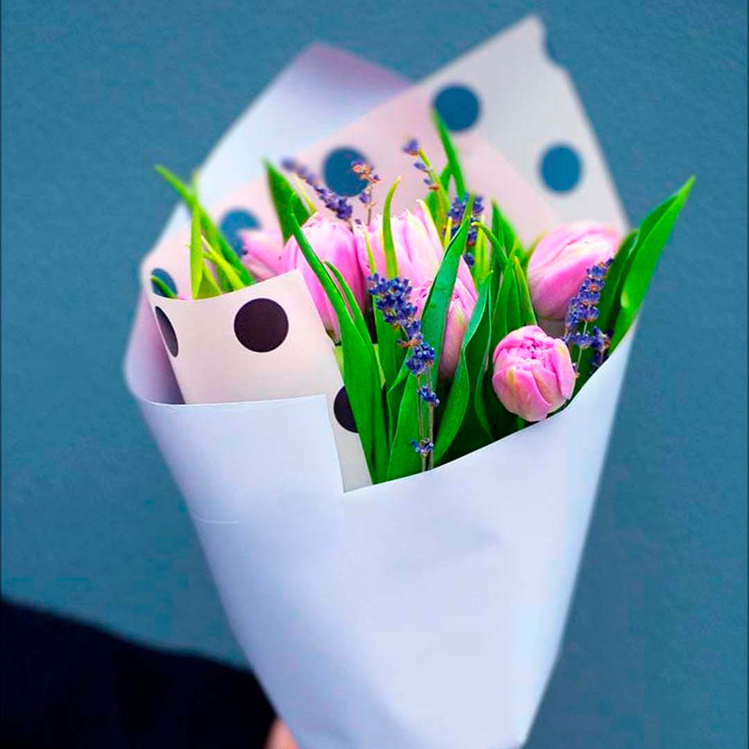 15 тюльпанов + лаванда