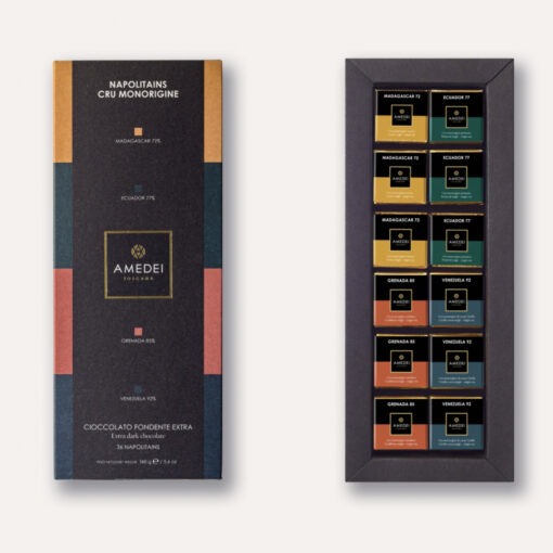Коробка из 36 маленьких шоколадок (наполитанов) из Тринидада, Венесуэлы, Мадагаскара, Ямайки, Эквадора и Гренады.