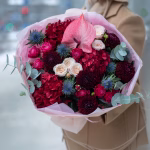 Составной букет с выразительным сочетанием цветов и фактур — стильный вариант для подарка и особых случаев.