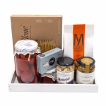 Маринованные томаты 1000 г, сардины Pepus, традиционная грузинская аджика 220 г, маринованный чеснок Reietó, оливки Manzanilla с косточкой La Masrojana 370 г, паста Mancini Curve 500 г, паста La Campofilone Linguine с трюфелем 250 г.