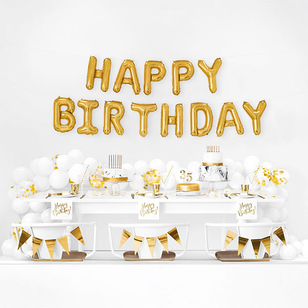 Фольгированный шар ‘Happy Birthday’, 340×35 см, золотой