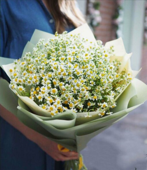 Ароматный букет из 25 матрикарий в стильной упаковке. К каждому нашему букеты мы бесплатно добавляем открытку и средство, продлевающее жизнь цветам.