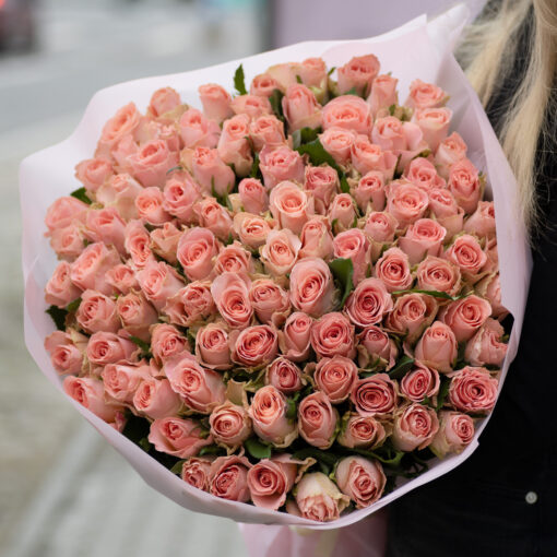 Шикарный классический букет из 101 свежая роза, высота 35-50 см. К каждому букету прикладываем открытку в подарок и средство, продлевающее жизнь розам. Рекомендуемое количество пакетиков для продления жизни букета — 4 штуки